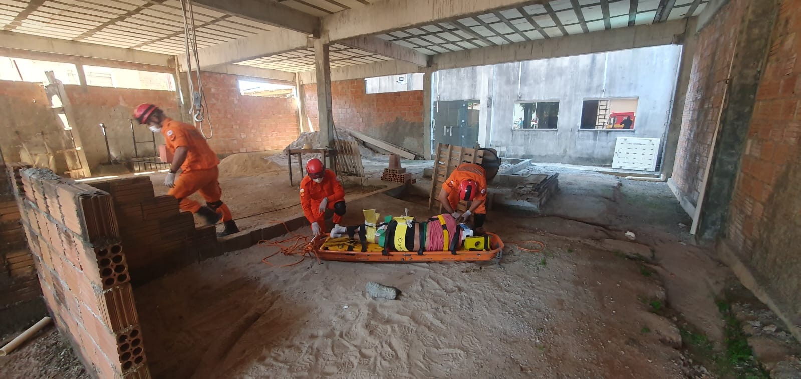 O homem machucou o rosto e tinha uma fratura na região do quadril. Os bombeiros tiveram que imobilizar o pedreiro em uma maca cesto para descer até o térreo. Depois o homem foi encaminhado para o Hospital Regional de Gurupi (HRG).