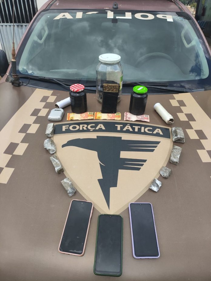 Quando foi abordado ele contou sobre as outras drogas e materiais relacionados ao tráfico que estavam na casa de sua mãe. No local, a polícia encontrou 685,46 gramas de maconha, uma balança de precisão, dois rolos de papel filme, dinheiro, três aparelhos celulares e uma motocicleta.