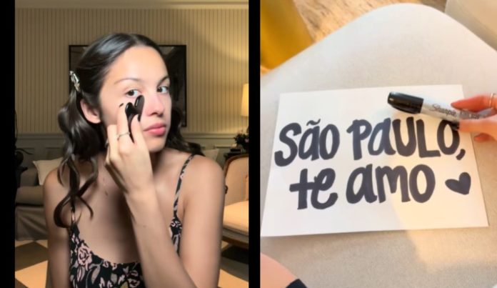 ‘Pensei em mostrar a vocês como é um dia na turnê, porque adoro assistir a esses conteúdos’, explica cantora em vídeo postado no TikTok. Olivia Rodrigo em vídeo no qual mostra rotina no Brasil