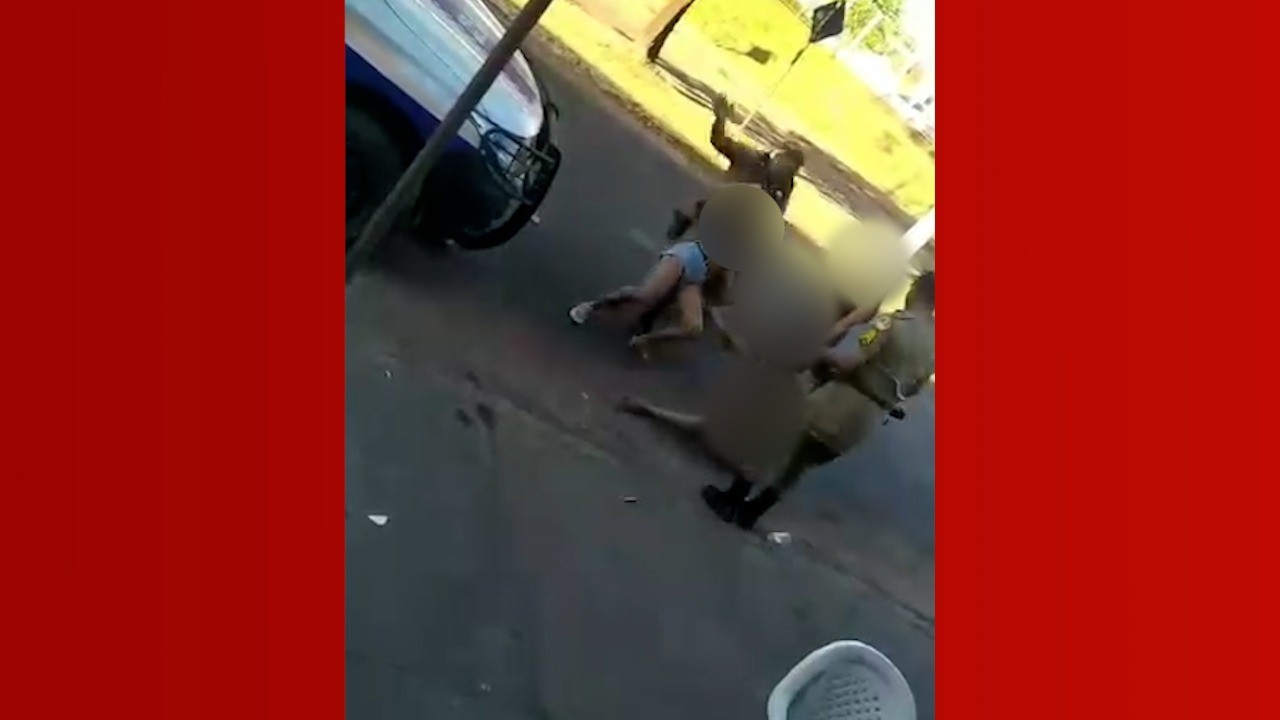 Desta vez as imagens mostram os militares aparentemente tentando separar uma briga entre duas mulheres em uma avenida. Uma delas é arrastada pelo PM e bate a cabeça no chão. Outra é arremessada no asfalto. Os PMs ainda dão tapas e uma das vítimas é agredida com socos.