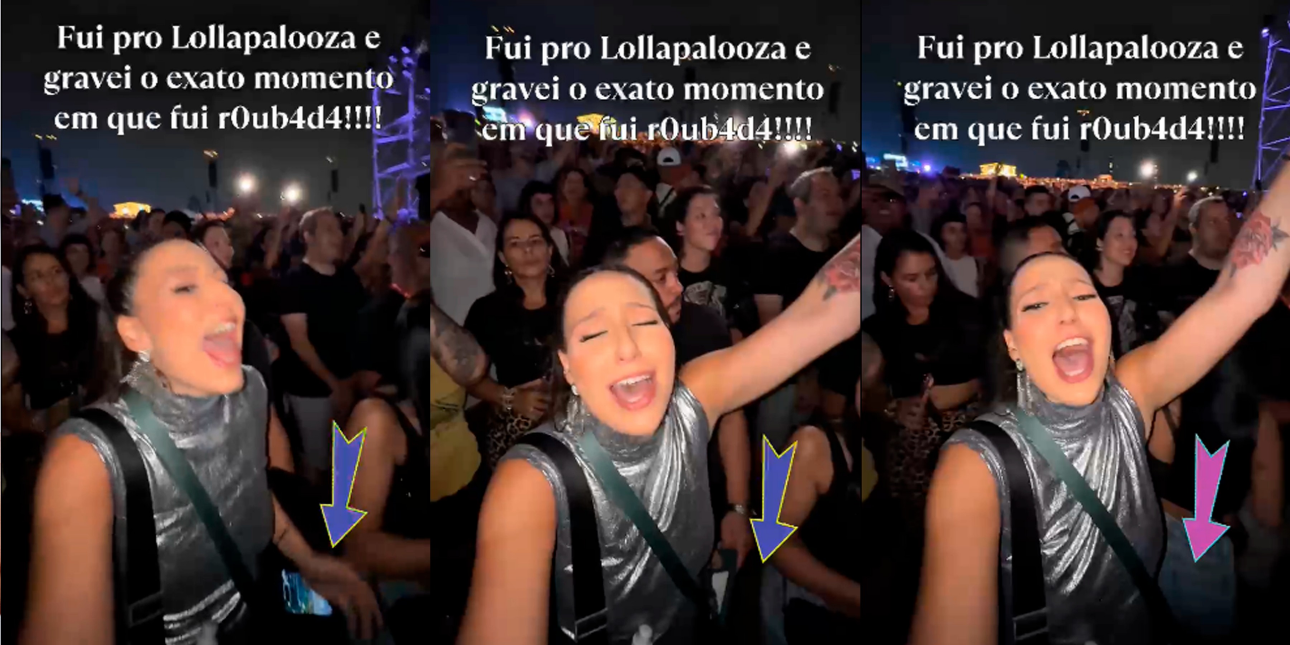 Assim que percebeu que tinha sido furtada, Alexia chegou a perguntar para pessoas ao redor se alguém tinha visto algo, mas ela conta que todos disseram que não viram nada. Não é a primeira vez de Alexia em um festival de música. A criadora de conteúdo já foi em várias edições do Rock in Rio, mas esta foi a primeira vez que isso aconteceu em um evento como esse.
