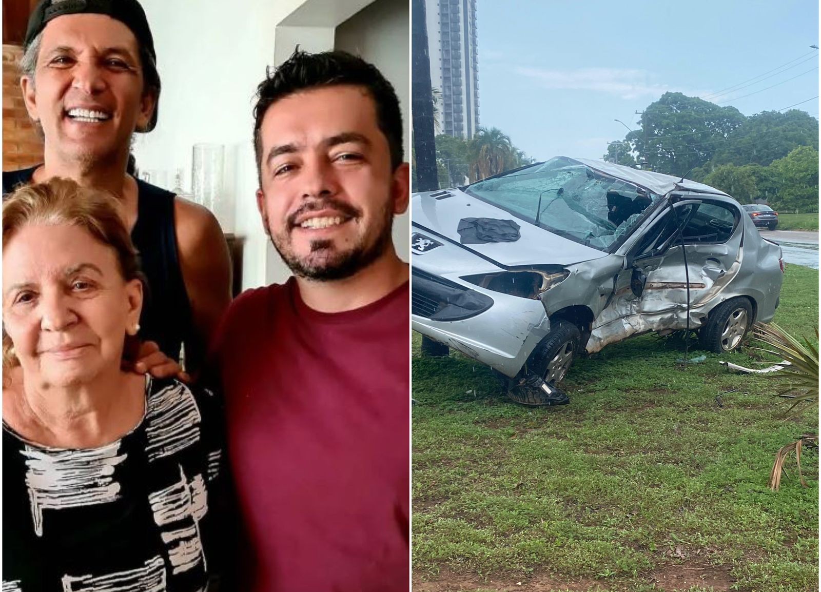 Enite estava dirigindo pela avenida e foi atingida pelo motorista. O carro dela capotou e ficou preso em um coqueiro, no meio do canteiro central.