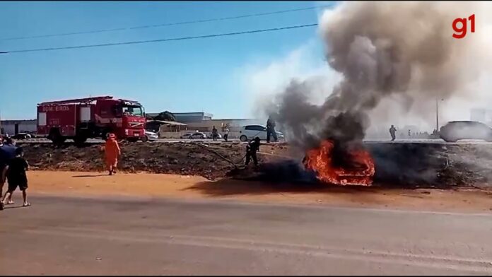 Um carro pegou fogo na tarde deste sábado (27) após um acidente envolvendo uma caminhonete. O caso aconteceu na rodovia BR-010, no trecho que fica no Plano Diretor de Palmas. Ainda não há informações sobre vítimas.