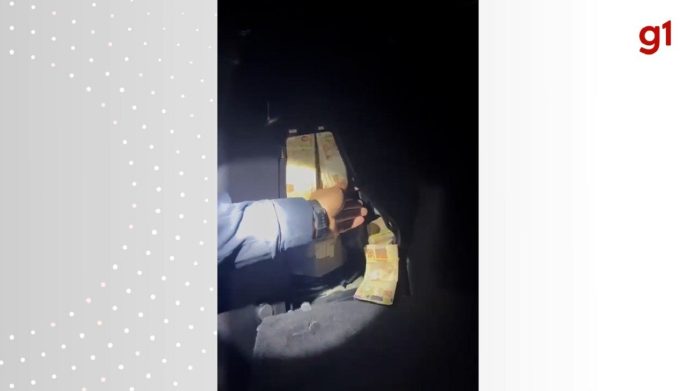 A Polícia Rodoviária Federal (PRF) registrou o momento em que bolos de dinheiro foram encontrados em compartimentos de um carro na BR-153, em Araguaína, no norte do Tocantins. Ao todo, foram apreendidos R$ 994.995. Nas imagens, é possível ver notas de R$ 100 e R$ 50 (veja no vídeo acima).