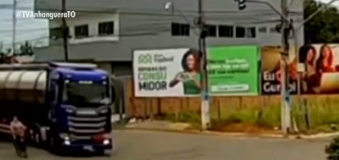Câmera de segurança registrou momento em que idosa foi atropelada por caminhão em Gurupi